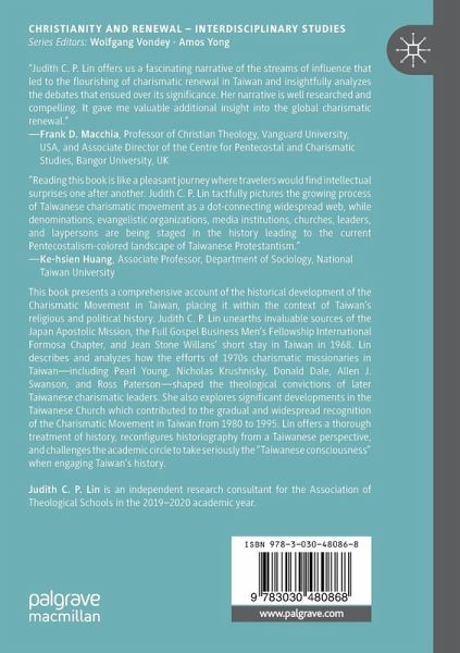 This book presents a comprehensive account of the historical development of the Charismatic Movement in Taiwan, placing it within the context of Taiwan's religious and political history. Judith C. P. Lin unearths invaluable sources of the Japan Apostolic Mission, the Full Gospel Business Men's Fellowship International Formosa Chapter, and Jean Stone Willans' short stay in Taiwan in 1968. Lin describes and analyzes how the efforts of 1970s charismatic missionaries in Taiwan-including Pearl Young, Nicholas Krushnisky, Donald Dale, Allen J. Swanson, and Ross Paterson-shaped the theological convictions of later Taiwanese charismatic leaders. She also explores significant developments in the Taiwanese Church which contributed to the gradual and widespread recognition of the Charismatic Movement in Taiwan from 1980 to 1995. Lin offers a thorough treatment of history, reconfigures historiography from a Taiwanese perspective, and challenges the academic circle to take seriously the "Taiwanese consciousness" when engaging Taiwan's history.