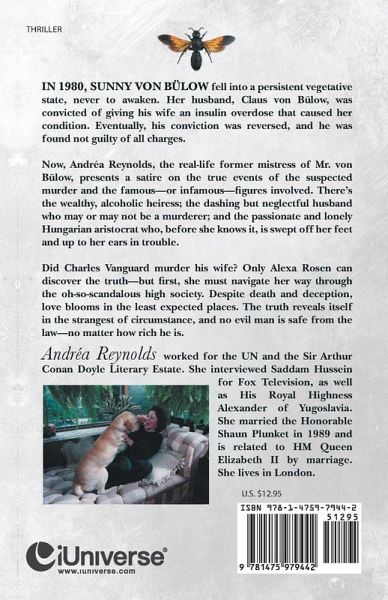 In 1980, Sunny von Bülow fell into a persistent vegetative state, never to awaken. Her husband, Claus von Bülow, was convicted of giving his wife an insulin overdose that caused her condition. Eventually, his conviction was reversed, and he was found not guilty of all charges. Now, Andréa Reynolds, the real-life former mistress of Mr. von Bülow, presents a satire on the true events of the suspected murder and the famous-or infamous-figures involved. There's the wealthy, alcoholic heiress; the dashing but neglectful husband who may or may not be a murderer; and the passionate and lonely Hungarian aristocrat who, before she knows it, is swept off her feet and up to her ears in trouble. Did Charles Vanguard murder his wife? Only Alexa Rosen can discover the truth-but first, she must navigate her way through the oh-so-scandalous high society. Despite death and deception, love blooms in the least expected places. The truth reveals itself in the strangest of circumstance, and no evil man is safe from the law-no matter how rich he is.