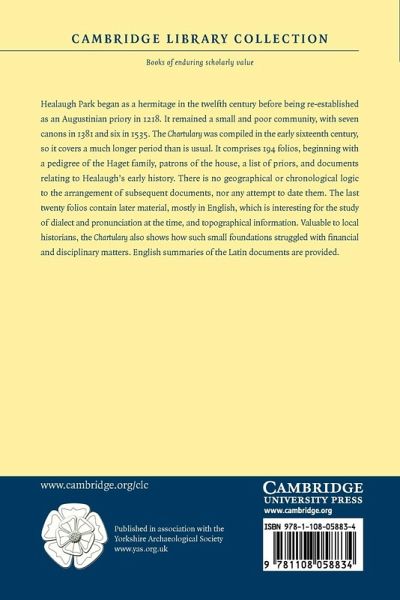 Healaugh Park began as a hermitage in the twelfth century before being re-established as an Augustinian priory in 1218. It remained a small and poor community, with seven canons in 1381 and six in 1535. The Chartulary was compiled in the early sixteenth century, so it covers a much longer period than is usual. It comprises 194 folios, beginning with a pedigree of the Haget family, patrons of the house, a list of priors, and documents relating to Healaugh's early history. There is no geographical or chronological logic to the arrangement of subsequent documents, nor any attempt to date them. The last twenty folios contain later material, mostly in English, which is interesting for the study of dialect and pronunciation at the time, and topographical information. Valuable to local historians, the Chartulary also shows how such small foundations struggled with financial and disciplinary matters. English summaries of the Latin documents are provided.