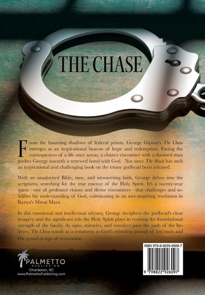 Journey from Shadows to Salvation: One Man's Pursuit of God Amidst Trials and Revelations. In The Chase, George Gipson takes you on a profound journey-a tale of redemption, enlightenment, and divine pursuit in the most inspirational and controversial book since The Shack. From the clutches of federal custody and a daunting encounter with a man destined for the electric chair, George found himself at the crossroads of despair and destiny. This chance meeting became the catalyst that rekindled his yearning for a deeper connection with God. But this is no ordinary tale. With only a basic Bible as his guide, he plunges deep into the scriptures, immersing himself in prayer and meditation. Through a vision of creation that culminates in the creation of a giraffe-a symbol that would be later confirmed in the vast landscapes of Kenya-he unravels the mysteries of faith and the Holy Spirit. Whether you are a devout Christian seeking a fresh perspective or someone on the edge of faith, The Chase transcends boundaries. It reveals the clear vision of the triune godhead and the transformative power of family rooted in divine understanding. Experience a revival of revelation, the birth and nurturing of God's children, and the imminent return of King Jesus through George's profound insights. Step into a realm where the Holy Spirit's empowerment is not just a belief but an awakening-a journey that promises signs, miracles, and wonders for those who dare to believe. Open these pages and embark on a journey of faith, restoration, and the relentless love of God.