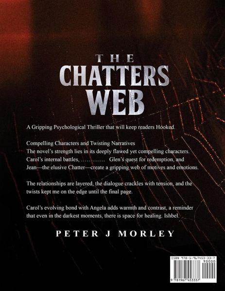 A Gripping Psychological Thriller that will keep readers Hooked. Compelling Characters and Twisting Narratives The novel's strength lies in its deeply flawed yet compelling characters. Carol's internal battles,. Glen's quest for redemption, and Jean the elusive Chatter create a gripping web of motives and emotions. The relationships are layered, the dialogue crackles with tension, and the twists kept me on the edge until the final page. Carol's evolving bond with Angela adds warmth and contrast, a reminder that even in the darkest moments, there is space for healing. Ishbel.