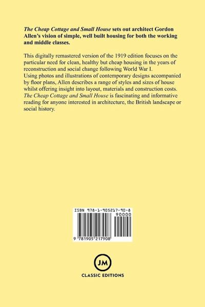 The Cheap Cottage and Small House sets out architect Gordon Allen's vision of simple, well built housing for both the working and middle classes. This digitally remastered version of the 1919 edition focuses on the particular need for clean, healthy but cheap housing in the years of reconstruction and social change following World War I. Using photos and illustrations of contemporary designs accompanied by floor plans, Allen describes a range of styles and sizes of house whilst offering insight into layout, materials and construction costs. The Cheap Cottage and Small House is fascinating and informative reading for anyone interested in architecture, the British landscape or social history.
