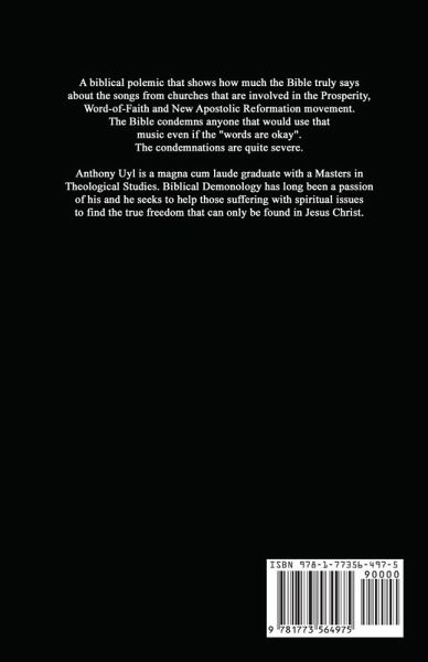 A biblical polemic that shows how much the Bible truly says about the songs from churches that are involved in the Prosperity, Word-of-Faith and New Apostolic Reformation movement. The Bible condemns anyone that would use that music even if the "words are okay". The condemnations are quite severe. Anthony Uyl is a magna cum laude graduate with a Masters in Theological Studies. Biblical Demonology has long been a passion of his and he seeks to help those suffering with spiritual issues to find the true freedom that can only be found in Jesus Christ.