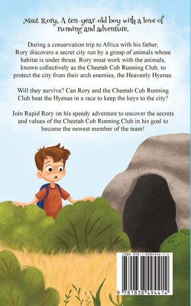 A story to warm the heart, entertain young and old, and told with humour. The Cheetah Cub Running Club is the first in a series of chapter books by the same name for 7-9 year olds introducing the cherished characters of Rapid Rory, Chiku Cheetah, Raziya Rhino and Elon Elephant who form a strong bond through dealing with adversity and their mutual love of running. Meet Rory, A ten-year-old boy with a love of running and adventure. During a conservation trip to Africa with his father, Rory discovers a secret city run by a group of animals whose habitat is under threat. Rory must work with the animals, known collectively as the Cheetah Cub Running Club, to protect the city from their arch enemies, the Heavenly Hyenas. Will they survive? Can Rory and the Cheetah Cub Running Club beat the Hyenas in a race to keep the keys to the city? Join Rapid Rory on his speedy adventure to uncover the secrets and values of the Cheetah Cub Running Club in his goal to become the newest member of the team! An energetic story of friendship, discovery, adventure and adversity Based in the vibrant African Savannahs of South Africa and Boswana A wonderful gift to entertain and inspire young readers