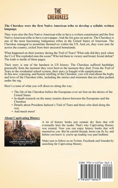 The Cherokee were the first Native American tribe to develop a syllabic written language. They were also the first Native American tribe to have a written constitution and the first Native American tribe to have a newspaper. And the list goes on and on. The Cherokee is one of the most fascinating Indigenous tribes in the United States of American. The Cherokee managed to assimilate themselves within the US. And yet, they were sent far across the country, exiled from their ancestral homelands. What happened on their journey during the Trail of Tears? What side did they pick when the Civil War exploded onto the scene? Who led them to victory and brutal, brutal defeat? The truth is inside of these pages. Their story is one of the harshest in US history. The Cherokee suffered hardships practically from the moment they were born to the moment they died. From the Trail of Tears to the residential school system, their story is fraught with complications. In this new, exposing, and honest retelling of the Cherokee, you will read about the highs and lows of the Cherokee tribe, including the stories and moments that are often pushed under the rug. Here's a taste of what you will discover along the way:The life of the Cherokee before the Europeans ever set foot on the shores of the United States In-depth research on the many treaties drawn between the Europeans and the Cherokee Details about President Jackson's Trail of Tears and those who died along the way The ways the Cherokee assimilated in the United States The truth about life as a Cherokee on the reservation Revelations about residential schools The Cherokee police force The first female principal chief of the Cherokee And much more! Scroll up and click the "add to cart" button to learn all that and more about the Cherokee!
