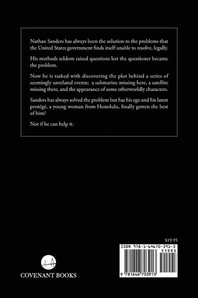 Nathan Sanders has always been the solution to the problems that the United States government finds itself unable to resolve, legally. His methods seldom raised questions lest the questioner became the problem. Now he is tasked with discovering the plot behind a series of seemingly unrelated events; a submarine missing here, a satellite missing there, and the appearance of some otherworldly characters. Sanders has always solved the problem but has his ego and his latest protégé, a young woman from Honolulu, finally gotten the best of him? Not if he can help it.