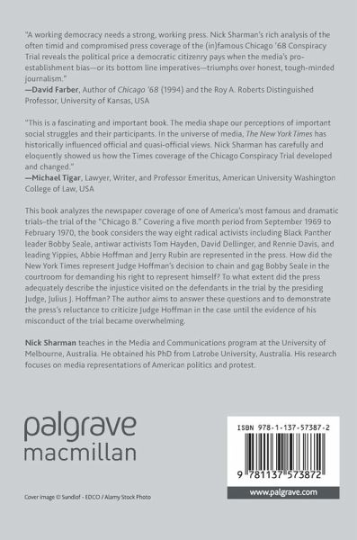 "In his new book, The Chicago Conspiracy Trial And The Press, published by Palgrave/MacMillan Books, author Nick Sharman looks at how mainstream newspapers portrayed the trial. ... this 250-page hardcover is obviously aimed at college libraries, academics and the like, but well worth seeking out for scholars of the era." (Pat Thomas, Nightflight, nightflight.com, July, 2016)