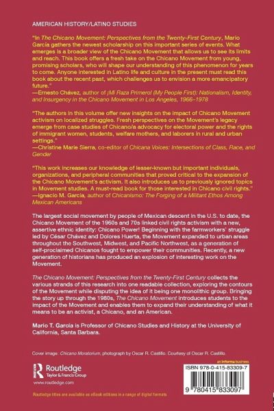 In The Chicano Movement: Perspectives from the 21st Century, Mario García gathers the newest scholarship on this important series of events. What emerges is a broader view of the Chicano movement that allows us to see its limits and reach. This book offers a fresh take on the Chicano movement from young, promising scholars, who will shape our understanding of this phenomenon for years to come. Anyone interested in Latino life and culture in the present, must read this book about the recent past, which challenges us to envision a more emancipatory future.