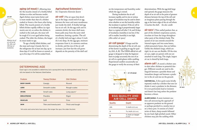 From addled to wind egg and crossed beak to zygote, the terminology of everything chicken is demystified in The Chicken Encyclopedia. Complete with breed descriptions, common medical concerns, and plenty of chicken trivia, this illustrated A-to-Z reference guide is both informative and entertaining. Covering tail types, breeding, molting, communication, and much more, Gail Damerow provides answers to all of your chicken questions and quandaries. Even seasoned chicken farmers are sure to discover new information about the multifaceted world of these fascinating birds.