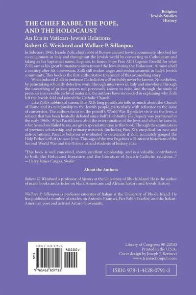 Acknowledgments 1. Introduction 2. The Jews and the Papacy 3. The Controversy Over Pope Pius XII and the Holocaust Part I 4. The Controversy Over Pope Pius XII and the Holocaust Part II 5. Chief Rabbi Zolli in Trieste 6. Chief Rabbi Zolli and the Holocaust 7. The Baptized Rabbi of Rome 8. The Zolli Conversion: Background Motives and Legacy 9. Epilogue-the Vatican and the Jews since the Holocaust Bibliography Index