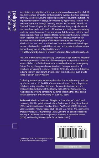 'A sustained investigation of the representation and construction of childhood in literature across the centuries is long overdue, but here at last is a carefully assembled volume that comprehensively covers the subject. The impressive selection of essays, of consistently high quality, takes us from medieval literature, through the early modern and Victorian periods, to Elizabeth Bowen, Virginia Woolf and Iain McEwan. Many major landmark texts are discussed both works of literature and the key contextualising works by Locke, Rousseau, Freud and others. But the reader will find much that's surprising here too: neglected titles, forgotten authors, new contexts. Taken together the essays gathered here will challenge many of our assumptions about the place of childhood in culture and the ways in which this has or hasn't shifted over time. We will certainly no longer be able to believe that the child has not been an important and continuous theme throughout all of English Literature.' - Matthew Grenby, Reader in Children's Literature, Newcastle University, UK