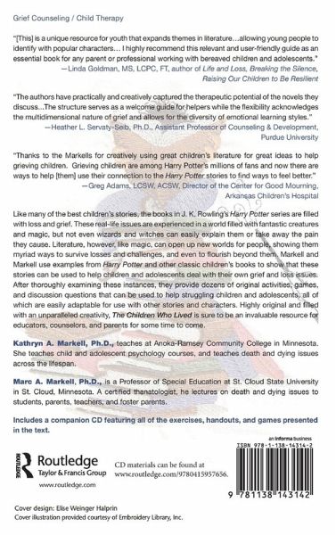 "As siblings, the authors Kathryn Markell and Marc Markell experienced the loss of their father at a young age. This profound event shaped their lives the,n as well as their adult lives. At young ages, they were able to find guidance and consolation in books. The books they read involved characters that had suffered losses and found healing; they were "the children who lived." The authors found power in literature to guide them through their own grief and on to healing. It was the occurence of their loss and road through children's literature and novels, which led these authors to develop an interest in helping children and adolescents through their work as a psychologist and educator. These elements laid the foundation for The Children Who Lived...It is always inspiring and encouraging to discover new and creative ways to approach the healing process, especially when dealing with grief and loss. This book opens new avenues for counselors and therapists to consider...[the] book provides creative and expressive approaches for dealing with children and adolescents who have suffered death and loss." - Elsa Soto Leggett, The Family Journal: Counseling and Therapy for Couples and Families