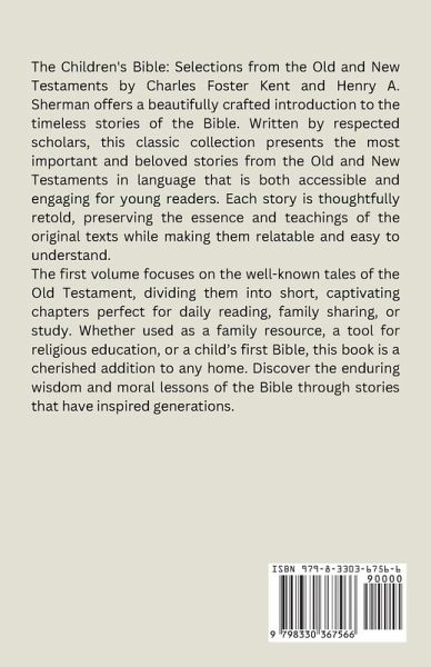 The Children's Bible: Selections from the Old and New Testaments by Charles Foster Kent and Henry A. Sherman is a timeless classic that has been cherished in American households for generations. Authored by esteemed scholars of biblical literature, this collection carefully preserves the integrity of the original texts while presenting the Bible's most significant stories in a language accessible to young readers. The first volume focuses on the most well-known tales from the Old Testament, offering captivating retellings divided into short, engaging chapters. Ideal for daily reading, family time, or as a reference, this book is a perfect introduction to the Bible's teachings for children.