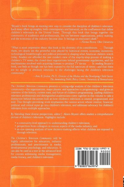 This volume presents an analysis of the children's television community--the organizations, major players, and approaches to programming--and offers an overview of the history, current state, and future of children's TV. The Children's Television Community is highly informative for educators, industry professionals, and practitioners in media, developmental psychology, and education.