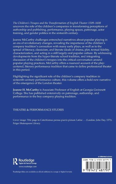 The Children's Troupes and the Transformation of English Theater 1509-1608 uncovers the role of the children's companies in transforming perceptions of authorship and publishing, performance, use of theatre space, and religious and gender politics in the sixteenth century.
