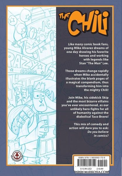 Like many comic book fans, young Mike Alvarez dreams of one day drawing his favorite heroes and working with legends like Stan 'The Man' Lee. Those dreams change rapidly when Mike accidentally illustrates the blank pages of a magical compendium, thus transforming him into the mighty Chili! Join Mike, his sidekick Skip, and the most bizarre villains you've ever encountered, as our unlikely hero fights for all of humanity against the diabolical Taco Bravo!