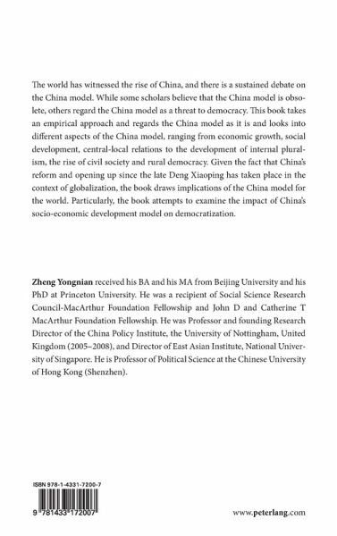 The world has witnessed the rise of China, and there is a sustained debate on the China model. While some scholars believe that the China model is obsolete, others regard the China model as a threat to democracy. This book takes an empirical approach and regards the China model as it is and looks into different aspects of the China model, ranging from economic growth, social development, central-local relations to the development of internal pluralism, the rise of civil society and rural democracy. Given the fact that China's reform and opening up since the late Deng Xiaoping has taken place in the context of globalization, the book draws implications of the China model for the world. Particularly, the book attempts to examine the impact of China's socio-economic development model on democratization.