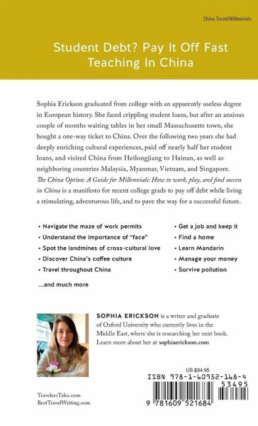 A few months after her twenty-first birthday and shortly after graduating with an unmarketable degree in modern European history, Sophia Erickson was waiting tables in rural Massachusetts and contemplating years of student loan servitude. After a chance email exchange with an old friend, she bought a one-way ticket to Beijing. The China Option explores her experiences in China over the following two years as she learned to maneuver around Asia, went through various jobs in Beijing, and discovered the rich rewards China offers those willing to take the plunge. Her work experience in China ranged from teaching at Chinäs top-ranked Tsinghua University to working for a drone company to judging a talent show on Chinäs national broadcasting channel. She also traveled extensively throughout Asia and learned the ins-and-outs of finding happiness and fulfillment in China. An honors graduate of Oxford University and Phillips Academy, Sophia now lives and works in the Middle East.