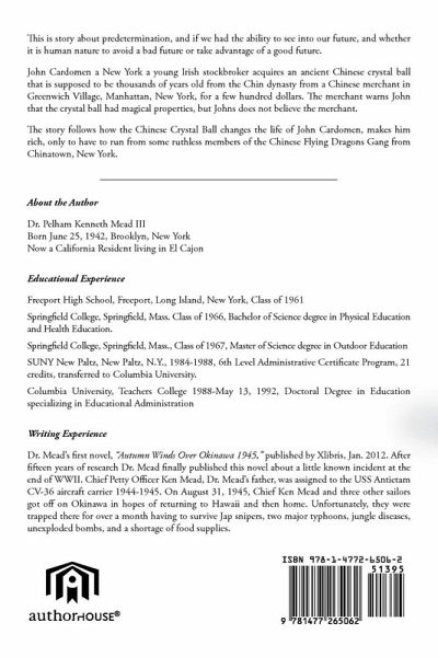 This is story about predetermination, and if we had the ability to see into our future, whether it is human nature to avoid a bad future or take advantage of a good future. John Cardomen a New York a young Irish stockbroker acquires an ancient Chinese crystal ball that is supposed to be thousands of years old from the Chin dynasty from a Chinese merchant in Greenwich Village, Manhattan, New York, for a few hundred dollars. The merchant warns John that the crystal ball had magical properties, but Johns does not believe the merchant. The story follows how the Chinese Crystal Ball changes the life of John Cardomen, makes him rich, only to have to run from some ruthless members of the Chinese Flying Dragons Gang from Chinatown, New York.