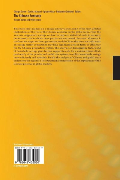 This book takes readers on a unique journey across some of the most debated implications of the rise of the Chinese economy on the global scene. From the analysis, suggestions emerge on how to improve statistical tools to measure performance and to obtain more precise macroeconomic forecasts. Moreover, it confirms the suspicion that a governance model of firms that does not sufficiently encourage market competition may have significant costs in terms of efficiency for the Chinese production system. The analysis of demographic factors and of household savings gives further support to calls for a serious reform effort, particularly of the pension and health care systems, to utilize households' savings more efficiently and equitably. Finally the analyses of Chinese and global trade underscore the need for a less superficial consideration of the implications of the Chinese presence in global markets.