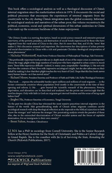 This book offers a sociological analysis as well as a theological discussion of China's internal migration since the marketization reform in 1978. It documents the social and political processes that encompass the experiences of internal migrants from the countryside to the city during China's integration into the global economy. Informed by sociological analysis and narratives of the urban poor, this volume reconstructs the political, economic, social and spiritual dimensions of this urban underclass in China who made up the economic backbone of the Asian superpower.