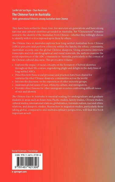The book explains how multi-generational Australian-born Chinese (ABC) negotiate the balance of two cultures. It explores both the philosophical and theoretical levels, focusing on deconstructing and re-evaluating the concept of 'Chineseness.' At a social and experiential level, it concentrates on how successive generations of early migrants experience, negotiate and express their Chinese identity.