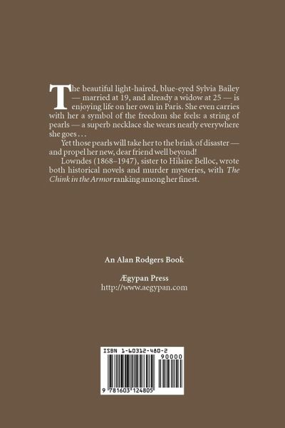 The beautiful light-haired, blue-eyed Sylvia Bailey -- married at 19, and already a widow at 25 -- is enjoying life on her own in Paris. She even carries with her a symbol of the freedom she feels: a string of pearls -- a superb necklace she wears nearly everywhere she goes . . . Yet those pearls will take her to the brink of disaster -- and propel her new, dear friend well beyond! Lowndes (1868-1947), sister to Hilaire Belloc, wrote both historical novels and murder mysteries, with "The Chink in the Armor" ranking among her finest.