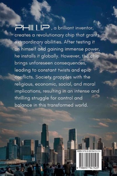Phillip, a brilliant inventor, creates a revolutionary chip that grants extraordinary abilities. After testing it on himself and gaining immense power, he installs it globally. However, the chip brings unforeseen consequences, leading to constant twists resulting in an epic conflict. Society copes with the ethical, religious,political and moral implications, resulting in an intense and thrilling struggle for control and balance in this transformed world.
