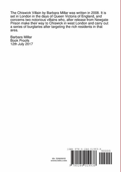 The Chiswick Villain was written by Barbara Millar in 2008. It is set in London in the days of Queen Victoria and concerns two notorious villains. Upon release from Newgate Prison they set off for Chiswick in west London and carry out a series of burglaries after targeting the rich residents in that area.