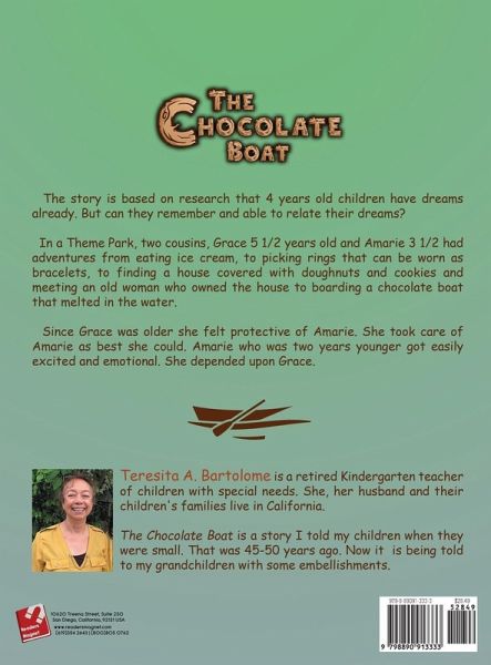 The story is based on research that 4 years old children have dreams already. But can they remember and able to relate their dreams? In a Theme Park, two cousins, Grace 5 1/2 years old and Amarie 3 1/2 had adventures from eating ice cream, to picking rings that can be worn as bracelets, to finding a house covered with doughnuts and cookies and meeting an old woman who owned the house to boarding a chocolate boat that melted in the water. Since Grace was older she felt protective of Amarie. She took care of Amarie as best she could. Amarie who was two years younger got easily excited and emotional. She depended upon Grace.
