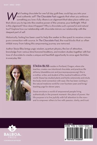What if eating chocolate for one full day, guilt-free, could tap you into your most authentic self? The Chocolate Fast suggests that when you embrace something you love-fully-there is an alignment that takes place within you that allows you to tap into the creative power of the universe, your birthright. What is this alignment? How does it happen? Why is chocolate such a powerful and natural tool? Explore how our relationship with chocolate mirrors our relationship with the deepest part of self. Historically, fasting has been used to help the seeker in the quest to receive a more pure connection with source. In The Chocolate Fast, the road blocks that so often inhibit many from taking this empowering journey are removed. Author Stasia Bliss brings yogic wisdom, quantum physics, the law of attraction, knowledge from various time-honored traditions, and modern studies together with her love of chocolate to create a unique and heartfelt opportunity to once again find bliss in everyday life!