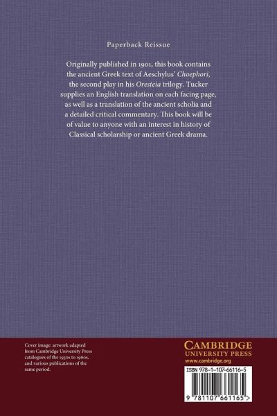 Originally published in 1901, this book contains the ancient Greek text of Aeschylus' Choephori, the second play in his Oresteia trilogy. Tucker supplies an English translation on each facing page, as well as a translation of the ancient scholia and a detailed critical commentary. This book will be of value to anyone with an interest in history of Classical scholarship or ancient Greek drama.