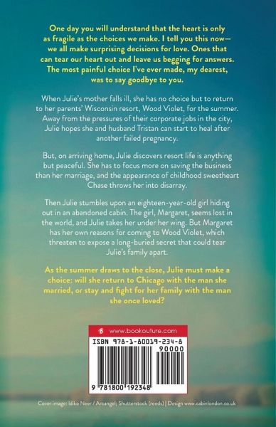 One day you will understand that the heart is only as fragile as the choices we make. I tell you this now-we will make surprising decisions for love. Ones that can tear our heart out and leave us begging for answers. The most painful choice I've ever made, my dearest, was to say goodbye to you. The last few months haven't been easy for Julie. Her marriage is under strain following the trauma of another failed pregnancy and her high-pressure job is beginning to take its toll. Then Julie's mother falls ill, and she has no choice but to return to Wood Violet, her parents' resort in Wisconsin. She hopes that taking a break from the city will give her and husband Tristan a chance to heal. But, on arriving home, Julie realizes the situation is far worse than she thought. Her mother, once the life and soul of the resort, can barely speak, and her father is struggling to keep the business afloat. Yet returning to the idyllic site of her childhood, surrounded by old friends and her first love, Julie starts to feel a sense of peace she'd thought she'd lost forever. Then Julie stumbles upon an eighteen-year-old girl hiding out in an abandoned cabin. The girl, Margaret, seems lost in the world, and Julie takes her under her wing. But when Julie finds letters and a drawing in Margaret's backpack, she realizes the girl hasn't told her the whole truth about why she's here. If Margaret finds what she's looking for, it could expose a long-buried secret that could tear Julie's family apart and drive the resort into the ground for good. And as the summer draws to a close, Julie must make a choice: will she return to Chicago with the man she married, or stay and fight for her parents and the home she loves? Lose yourself in a life-affirming tale about love, betrayal and finding your true home, from the bestselling author of The Lighthouse Keeper. Fans of Mary Ellen Taylor, Barbara O'Neal and This is Not How it Ends will adore Cynthia Ellingsen's captivating novel. Why readers love Cynthia Ellingsen: "I loved this book so very much!! I didn't want it to end! It kept me engaged the entire time! Highly recommend!" Goodreads reviewer ¿¿¿¿¿ "Outstanding!... I loved how the story kept you on the edge of your seat with anticipation and mystery all the way until the end. What a great story!" Goodreads reviewer ¿¿¿¿¿ "Couldn't put it down. Finished in two days... the storyline and the rich characters reel you in. A must read!" Goodreads reviewer ¿¿¿¿¿ "Omg it was fantastic. Family drama, a very fun mystery, and romance all rolled into one. This was a great escape and I enjoyed every minute of it!" Goodreads reviewer ¿¿¿¿¿
