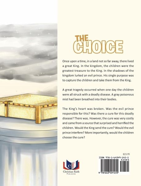 Once upon a time, in a land not so far away, there lived a great King. In the kingdom, the children were the greatest treasure to the King. In the shadows of the kingdom lurked an evil prince. His single purpose was to capture the children and take them from the King. A great tragedy occurred when one day the children were all struck with a deadly disease. A gray poisonous mist had been breathed into their bodies. The King's heart was broken. Was the evil prince responsible for this? Was there a cure for this deadly disease? There was. However, the cure was very costly and came from a source that surprised and horrified the children. Would the King send the cure? Would the evil prince interfere? More importantly, would the children choose the cure?