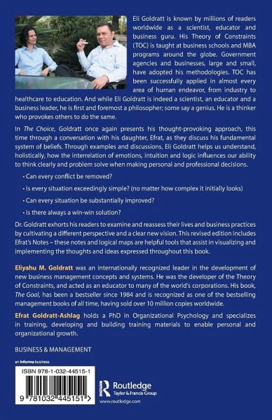 In The Choice, Goldratt once again presents his thought-provoking approach, this time through a conversation with his daughter, Efrat, as they discuss his fundamental system of beliefs. Through examples and discussions, Eli Goldratt helps us understand, holistically, how the interrelation of emotions, intuition and logic influences our ability to think clearly and problem solve when making personal and professional decisions.