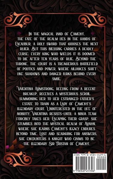In the magical land of Camelot, the fate of the realm lies in the hands of Excalibur, a holy sword that chooses the next ruler. But this blessing carries a deadly curse: every king who wields it is doomed to die after ten years of rule. Beyond the throne, the court is a treacherous battlefield of politics and power, where alliances shift like shadows and danger lurks behind every smile. Valentina Armstrong, reeling from a recent breakup, receives a mysterious scroll summoning her to her estranged father's estate to train as a Lady of Camelot's legendary court. Uninterested in the life of nobility, Valentina resists-until a ninja team forcibly takes her. Escaping their grasp, she stumbles into the mystical realm of Avalon, where she learns Camelot's legacy endures beyond time. Lost and searching for answers, she encounters a knight who claims to be the legendary Sir Tristan of Camelot.