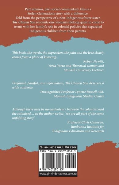 Part memoir, part social commentary, this is a Stolen Generations story with a difference. Told from the perspective of a non-Indigenous foster sister, The Chosen Son recounts one woman's lifelong quest to come to terms with her family's role in colonial policies that separated Indigenous children from their parents.