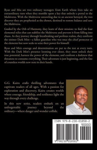 Ryan and Mia are two ordinary teenagers from Earth whose lives take an extraordinary turn when they stumble upon a key that unlocks a portal to the Multiverse. With the Multiverse unraveling due to an ancient betrayal, the two discover they are prophesied as the chosen, destined to restore balance and save the Multiverse. Guided by the Orb of Harmony, they learn of their mission: to find the four elemental relics that can stabilize the Multiverse and prevent it from falling into chaos. As they journey through breathtaking and perilous realms, they confront the sinister Dark Mist-a fallen guardian who was once the chief protector of the elements but now seeks to seize their power for himself. Ryan and Mia's courage and determination are put to the test at every turn. With the Dark Mist's presence looming ever closer, they must unlock their true potential, harness the power of the elements, and confront a darkness that threatens to consume everything. Their adventure is just beginning, and the fate of countless worlds now rests in their hands.