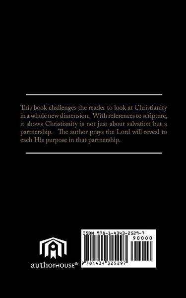 This book challenges the reader to look at Christianity in a whole new dimension. With references to scripture, it shows Christianity is not just about salvation but a partnership. The author prays the Lord will reveal to each His purpose in that partnership.