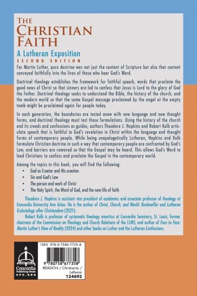 The Gospel message remains unchanged over time, yet the context in which it's delivered evolves. The Christian Faith, Second Edition takes this into consideration, featuring new perspectives on the presentation of Christian doctrine for the contemporary setting, references to recent literature and Christian theological emphases, improved readability, and insights from Theodore J. Hopkins on contemporary systematic theology. This highly-readable presentation of basic teachings of the Christian faith from a Lutheran framework will enrich the lives and studies of any student or church professional.