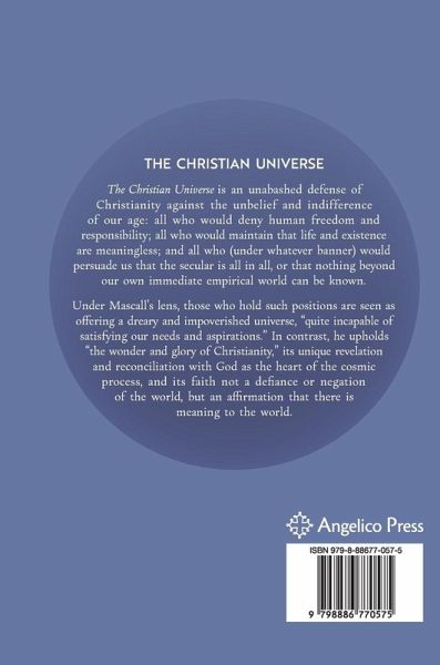 The Christian Universe is an unabashed defense of Christianity against the unbelief and indifference of our age: all who would deny human freedom and responsibility; all who would maintain that life and existence are meaningless; and all who (under whatever banner) would persuade us that the secular is all in all, or that nothing beyond our own immediate empirical world can be known. Under Mascall's lens, those who hold such positions are seen as offering a dreary and impoverished universe, "quite incapable of satisfying our needs and aspirations." In contrast, he upholds "the wonder and glory of Christianity," its unique revelation and reconciliation with God as the heart of the cosmic process, and its faith not a defiance or negation of the world, but an affirmation that there is meaning to the world.