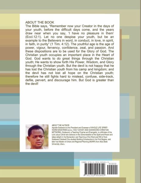 The Bible says, "Remember now your Creator in the days of your youth, before the difficult days come, and the years draw near when you say, 'I have no pleasure in them' (Eccl.12:1). Let no one despise your youth, but be an example to the Believers in word, in conduct, in love, in spirit, in faith, in purity" (1 Tim. 4:12). The youthful age is the age of power, vigour, fervency, confidence, zeal, and passion. And these dispositions are to be used for the Glory of God. The Christian youth occupies an important place in the Heart of God. God wants to do great things through the Christian youth; He wants to show forth His Power, Wisdom, and Glory through the Christian youth. But the devil is not happy that he has lost the Christian youth from his camp and kingdom; and the devil has not lost all hope on the Christian youth; therefore he still fights hard to mislead, confuse, side-track, defile, pervert, and discourage him. But God is greater than the devil!