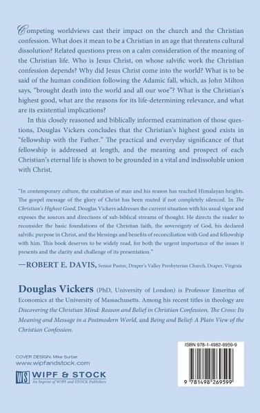 Competing worldviews cast their impact on the church and the Christian confession. What does it mean to be a Christian in an age that threatens cultural dissolution? Related questions press on a calm consideration of the meaning of the Christian life. Who is Jesus Christ of whose salvific work the Christian confession depends? Why did Jesus Christ come into the world? What is to be said of the human condition following the Adamic fall, which, as John Milton says, ""brought death into the world and all our woe""? What is the Christian's highest good, the grounds on which it has life-determining relevance, and what are its existential implications? In this closely reasoned and biblically informed examination of those questions, Douglas Vickers concludes that the Christian's highest good exists in ""fellowship with the Father."" The practical and everyday significance of that fellowship is addressed at length, and the meaning and prospect of each Christian's eternal life is shown to be grounded in a vital and indissoluble union with Christ.