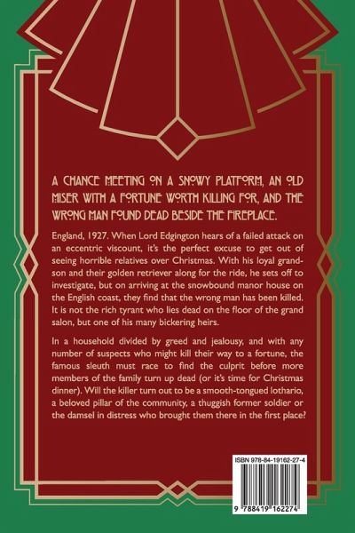 A chance meeting on a snowy platform, an old miser with a fortune worth killing for, and the wrong man found dead beside the fireplace. England, 1927. When Lord Edgington hears of a failed attack on an eccentric viscount, it's the perfect excuse to get out of seeing horrible relatives over Christmas. With his loyal grandson and their golden retriever along for the ride, he sets off to investigate, but on arriving at the snowbound manor house on the English coast, they find that the wrong man has been killed. It is not the rich tyrant who lies dead on the floor of the grand salon, but one of…mehr