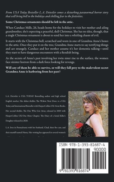 From USA Today Bestseller L.A. Detwiler comes a disturbing paranormal horror novel that will bring hell to the holidays and chilling fear to the festivities. Some Christmas ornaments should be left in the attic. When Candace Mills, 26, heads home for the holidays to visit her mother and ailing grandmother, she's expecting a peaceful, dull Christmas. She has no idea, though, that a single Christmas ornament is about to send her into a whirling chasm of evil. It starts with the Christmas bell, scratched and worn in one of Grandma Anne's boxes in the attic. Once they put it on the tree, Grandma Anne starts to say terrifying things and act strangely. Candace and her mother assume it's her dementia talking-until they start to have dangerous encounters with a fiendish being. As the secrets of Anne's past involving her twin sister rise to the surface, the women face sinister horrors from a dark force looking for revenge. Will any of them be able to survive, or will they fall prey to the malevolent secret Grandma Anne is harboring from her past?