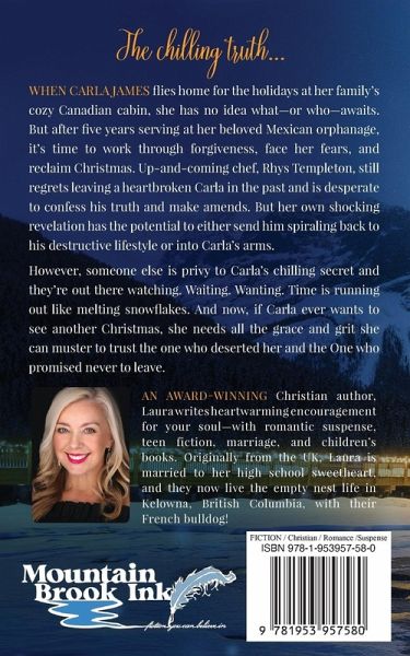 Originally published by Anaiah Press and republished by Mountain Brook Ink.The chilling truth... When Carla James flies home for the holidays at her family's cozy Canadian cabin, she has no idea what-or who-awaits. But after five years serving at her beloved Mexican orphanage, it's time to work through forgiveness, face her fears, and reclaim Christmas. Up-and-coming chef, Rhys Templeton, still regrets leaving a heartbroken Carla in the past and is desperate to confess his truth and make amends. But her own shocking revelation has the potential to either send him spiraling back to his destructive lifestyle or into Carla's arms. However, someone else is privy to Carla's chilling secret and they're out there watching. Waiting. Wanting. Time is running out like melting snowflakes. And now, if Carla ever wants to see another Christmas, she needs all the grace and grit she can muster to trust the one who deserted her and the One who promised never to leave.