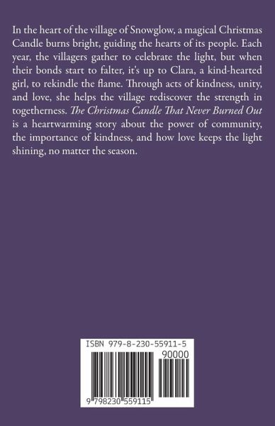 In the heart of the village of Snowglow, a magical Christmas Candle burns bright, guiding the hearts of its people. Each year, the villagers gather to celebrate the light, but when their bonds start to falter, it's up to Clara, a kind-hearted girl, to rekindle the flame. Through acts of kindness, unity, and love, she helps the village rediscover the strength in togetherness. The Christmas Candle That Never Burned Out is a heartwarming story about the power of community, the importance of kindness, and how love keeps the light shining, no matter the season.