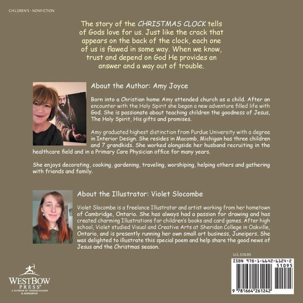 The story of the CHRISTMAS CLOCK tells of Gods love for us. Just like the crack that appears on the back of the clock, each one of us is flawed in some way. When we know, trust and depend on God He provides an answer and a way out of trouble.