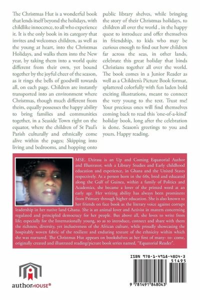 The Christmas Hut is a wonderful book that lends itself beyond the holidays, with childlike innocence, to all who experience it. It is the only book in its category that invites and welcomes children, as well as the young at heart, into the Christmas Holidays, and walks them into the New year, by taking them into a world quite different from their own, yet bound together by the joyful cheer of the season, as it rings the bells of goodwill towards all, on each page. Children are instantly transported into an environment where Christmas, though much different from theirs, equally possesses the happy ability to bring families and communities together, in a Seaside Town right on the equator, where the children of St Paul's Parish culturally and ethnically come alive within the pages; Skipping into living and bedrooms rooms, and hopping unto public library shelves, while bringing the story of their Christmas holidays, to children all over the world , in the happy quest to introduce and offer themselves in friendship, to kids who may be curious enough to find out how children far across the seas, in other lands, celebrate this great holiday that binds Christians together all over the world. The book comes in a Junior Reader as well as a Children's Picture Book format, splattered colorfully with fun laden bold exciting illustrations, meant to connect the very young to the text. Trust me! Your precious ones will find themselves coming back to read this 'one-of-a-kind' holiday book, long after the celebration is done. Season's greetings to you and yours. Happy reading.