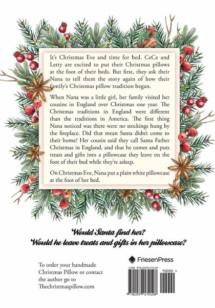 It's Christmas Eve and time for bed. CeCe and Letty are excited to put their Christmas pillows at the foot of their beds. But first, they ask their Nana to tell them the story again of how their family's Christmas pillow tradition began. When Nana was a little girl, her family visited her cousins in England over Christmas one year. The Christmas traditions in England were different than the traditions in America. The first thing Nana noticed was there were no stockings hung by the fireplace. Did that mean Santa didn't come to their home? Her cousin said they call Santa Father Christmas in…mehr